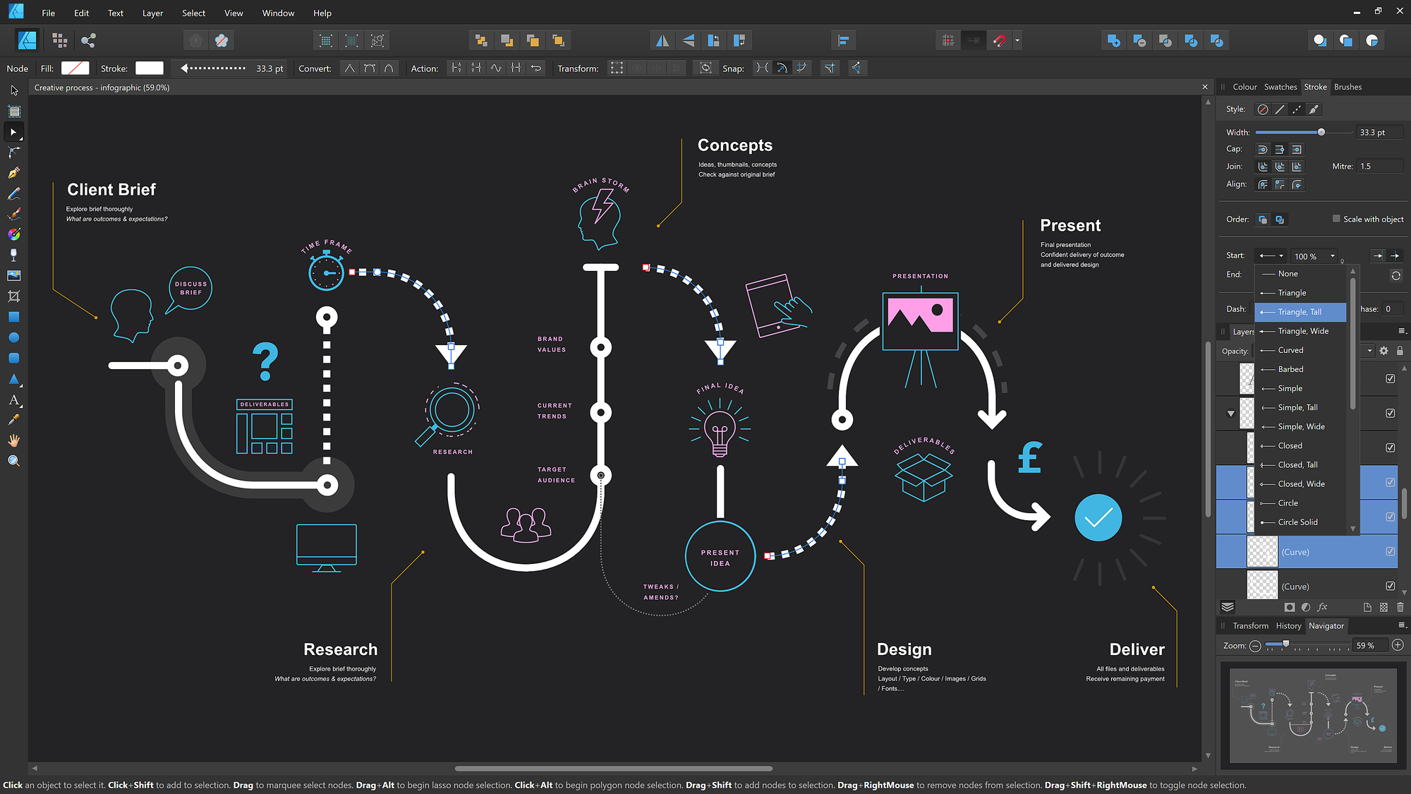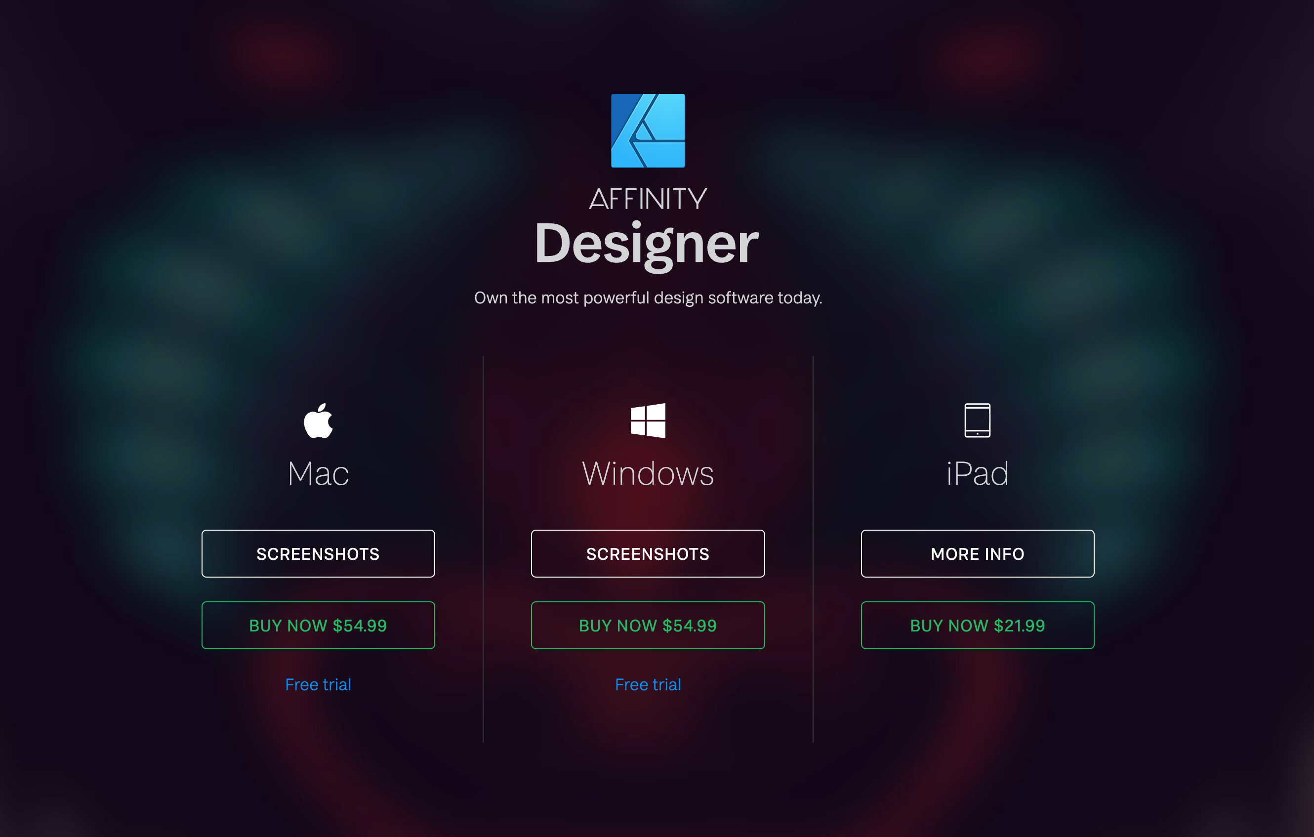 A budget-friendly alternative to Adobe Illustrator. Affinity products are great in the fact that it is a one-time payment that includes upgrades versus a subscription-based model like Adobe.