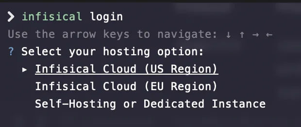 You can use Infisical within the command line by following the install instructions. It’s simple to use and connect to your self-hosted instance. There are installs for all major operating systems.