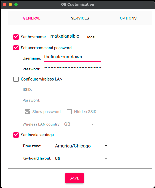 - WLAN Country (typically not needed unless you are using wireless)