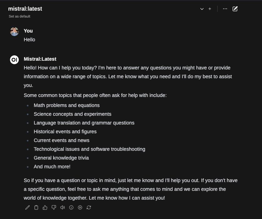 docker exec -it ollama ollama run mistral